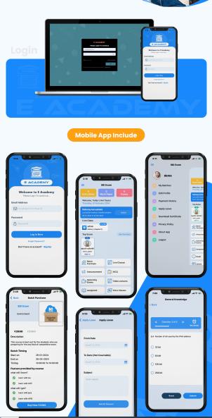 students can Attend Online Exams/Tests (Practice or Mock) also can receive their assigned projects and See Vacancy through the online platform. Also, students will get the feature to Login